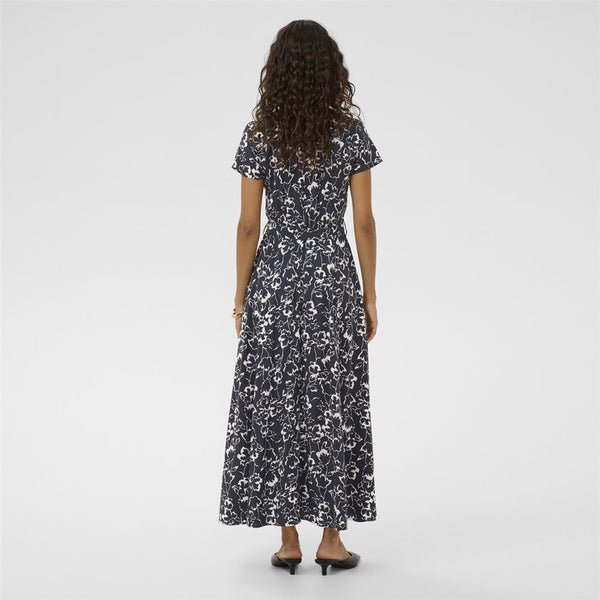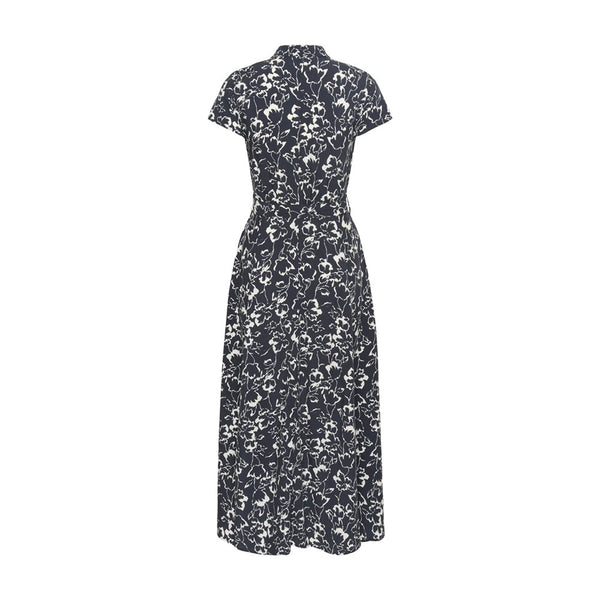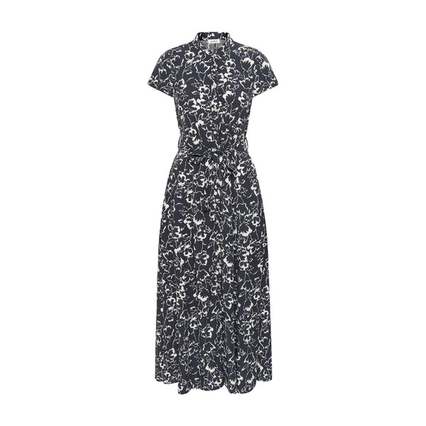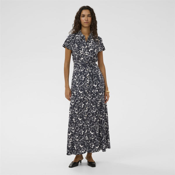 This shirt dress features a straight fit, classic collar, short sleeves and full button front. A matching self-tie belt defines the waist, while the flowing maxi length creates an easy silhouette.