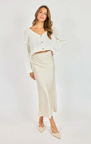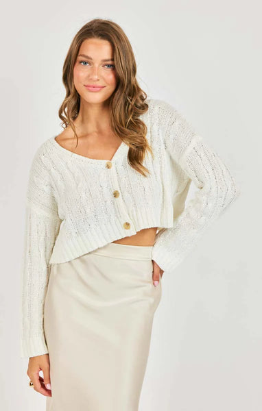 The You And Me Cardi is a gorgeous light weight knit cardigan that features a v neck line, a drop shoulder and a cropped length.